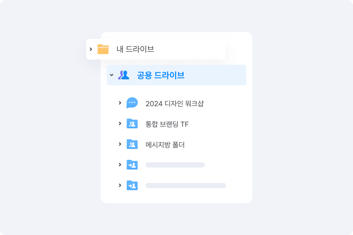 개인 PC, 메시지, 메일 등 곳곳에 흩어진 업무 파일을 네이버웍스 드라이브 한곳에서 원하는 방식으로 정리하고 공유하세요. 팀·동료들과의 협업 공간과 개인 공간을 분리할 수 있어 업무 목적에 따라 효율적으로 사용할 수 있습니다.