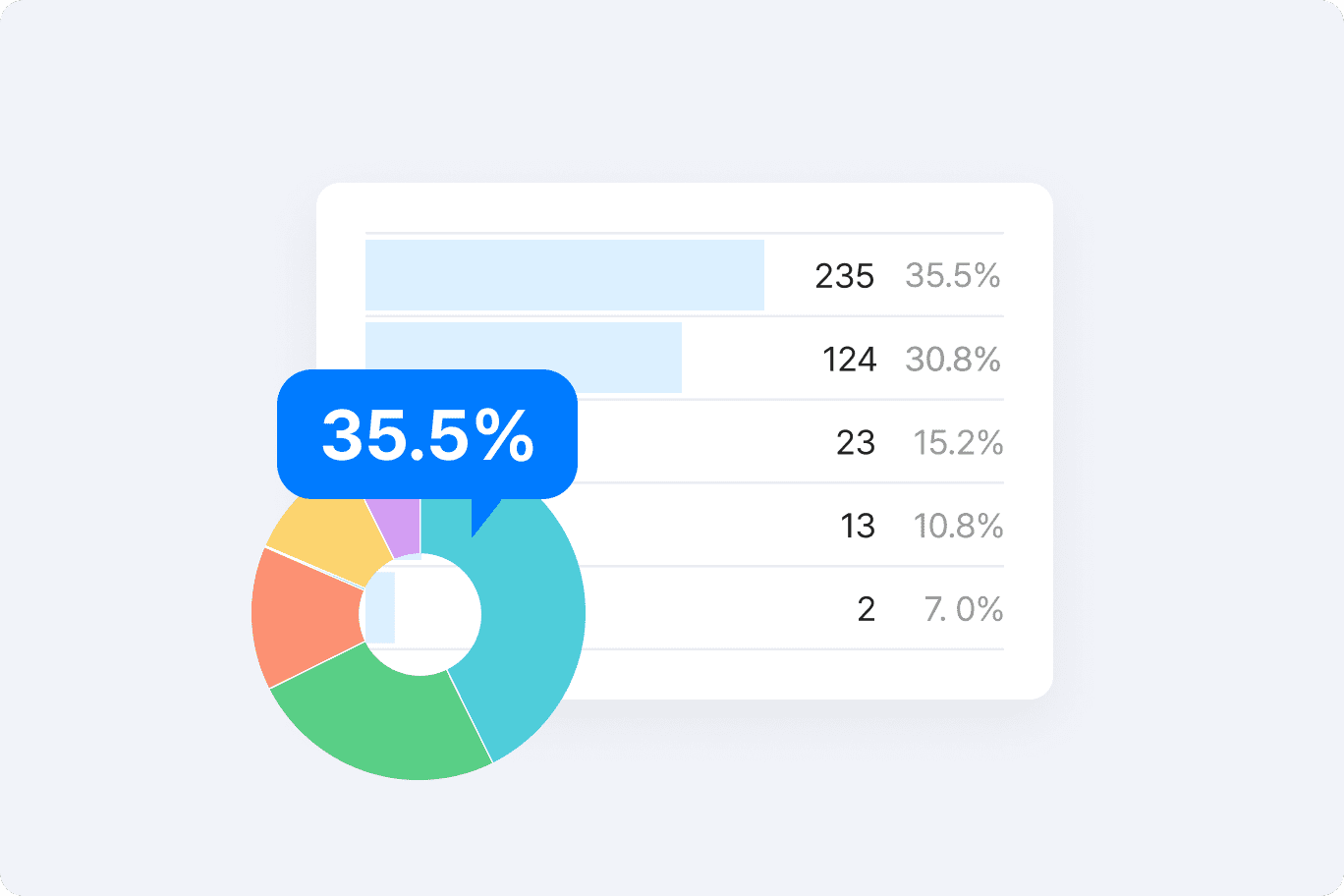시각화 결과를 실시간으로 제공하여 통계 지식이 없이도 데이터의 의미를 한눈에 파악할 수 있어 신속한 의사결정을 지원합니다. 설문 결과는 Excel, CSV 등의 포맷으로 추출할 수 있어 보고 프로세스 및 보고서 작성 작업을 자동화할 수 있습니다.
