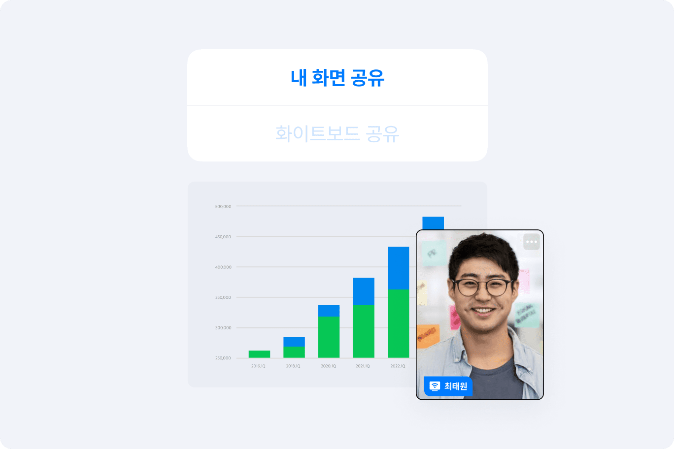 회의에 참석하지 못한 팀 동료, 유관부서 담당자에게 클릭만으로 빠르게 내용을 공유해보세요. 텍스트로 전달하지 못하는 현장감과 분위기, 디테일한 맥락을 전달할 수 있습니다.