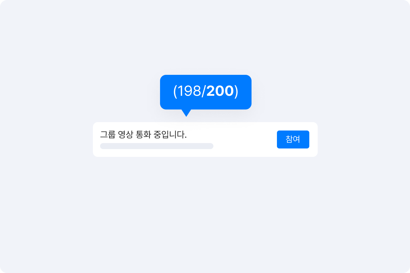 최대 200명이 동시에 음성/영상통화에 참여할 수 있어, 대규모 미팅이나 행사도 진행할 수 있습니다. 미팅 참석자 모두 별도 프로그램 설치 없이 대화방 또는 캘린더 화면 내에서 버튼 하나로 즉시 미팅 개설/참여가 가능하여 피로감을 최소화할 수 있습니다.